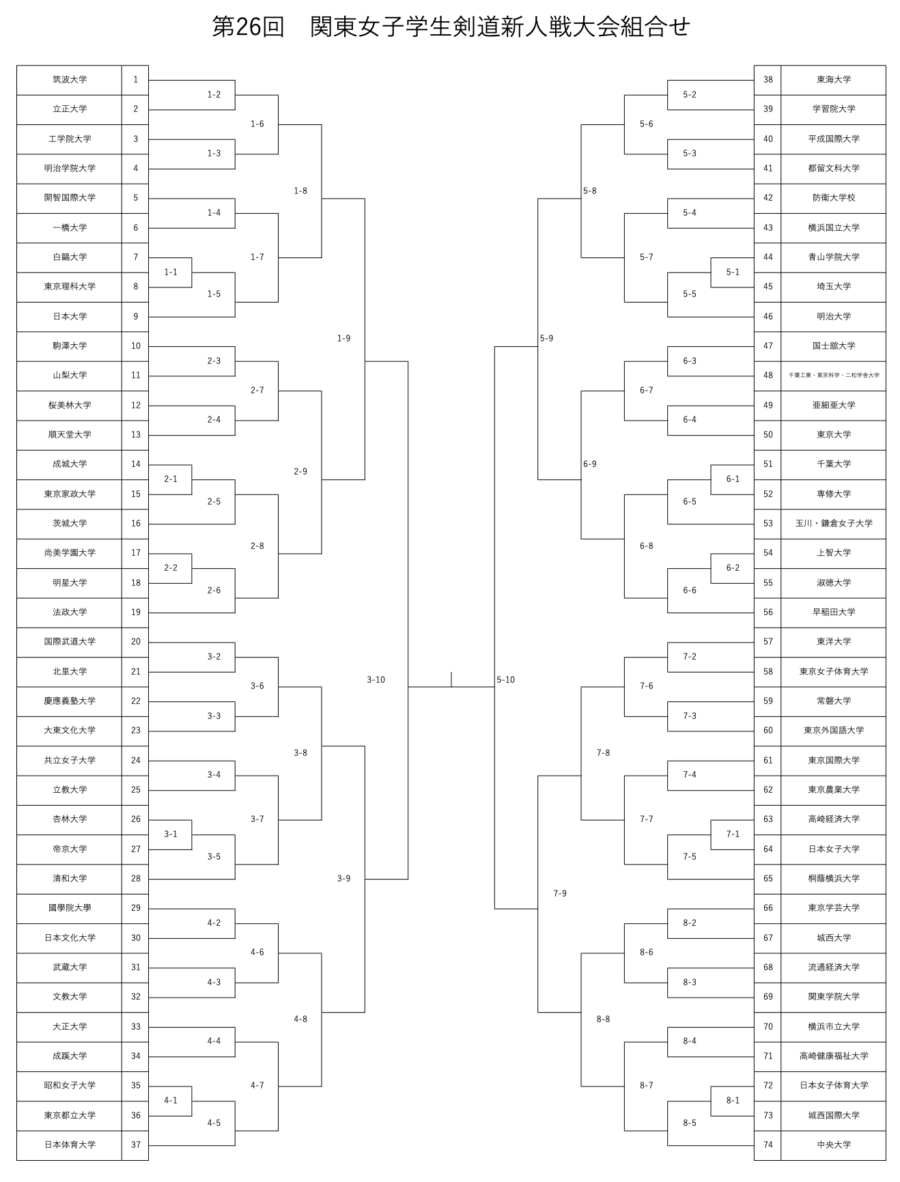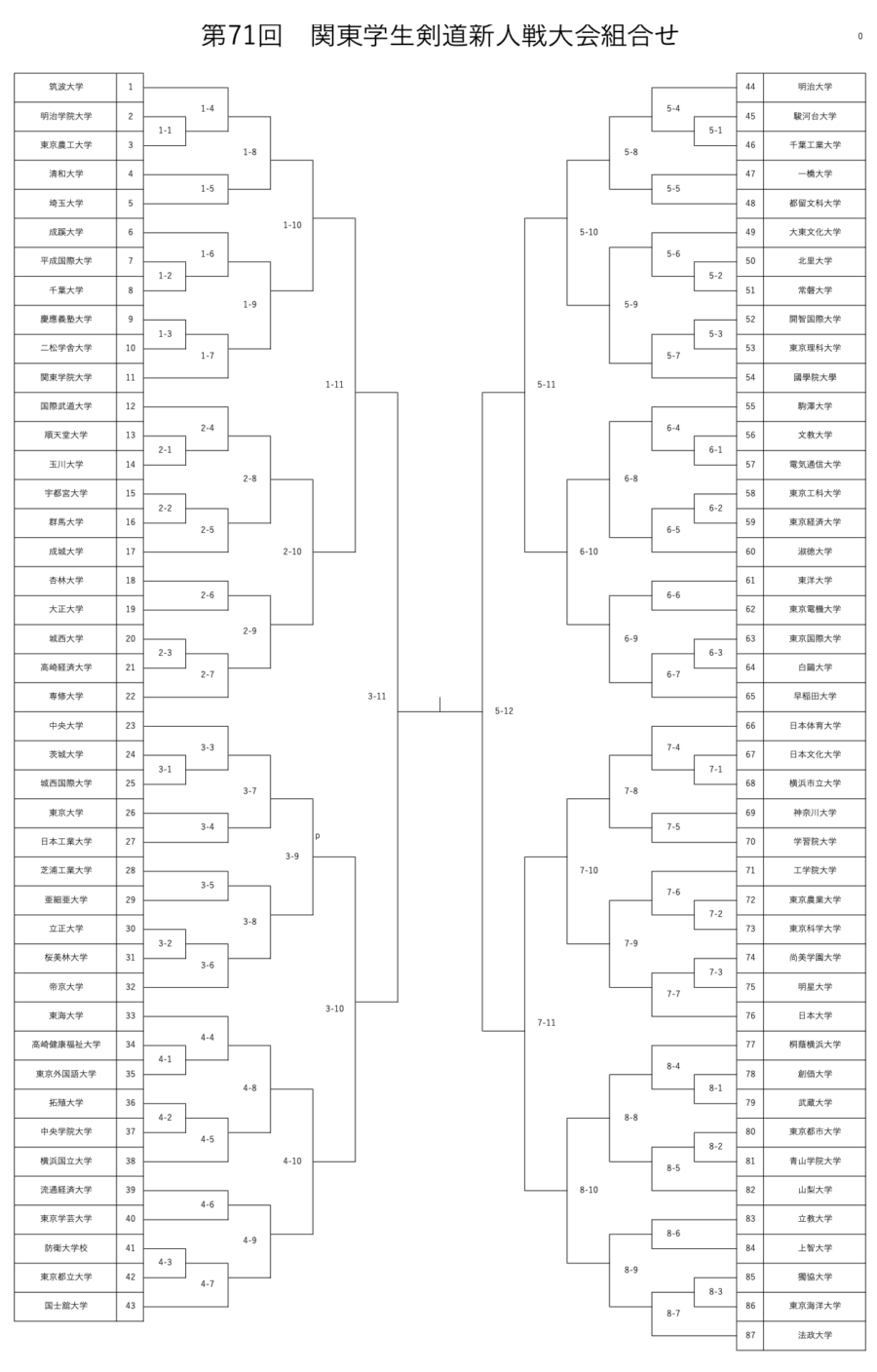 第71回関東学生剣道新人戦大会、第26回関東女子学生剣道新人戦大会の組み合わせが決定しましたので、ご連絡いたします。